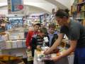 Den dětí oslavily děti ze školní družiny v knihkupectví Dobrovský na autogramiádě zpěvníku My First Songs kanadského bluesmana Jonathana Gaudeta a ilustrátora Libora Drobného.